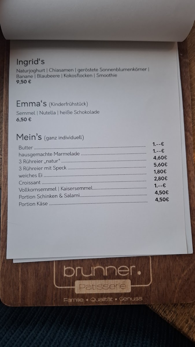 Patisserie Brunner Menu